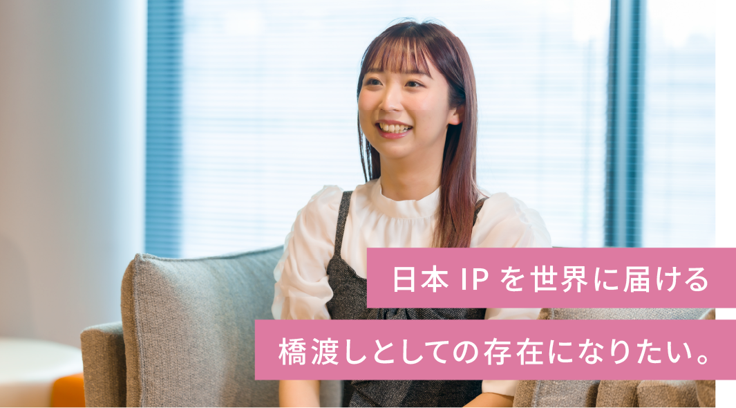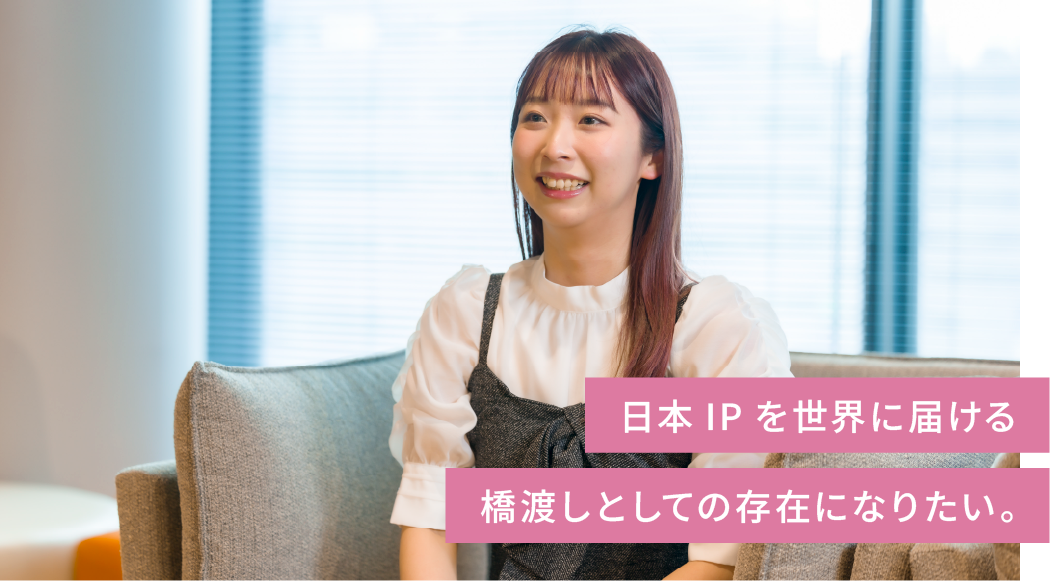 - もともとアニメやイベントが大好きで、学生時代から日本のエンタメ文化に強く惹かれていました。日本の大学院に進学し、経営を学ぶかたわら、秋葉原のIP※をテーマにしたカフェでのアルバイトを通じて、リアルな場でファンが笑顔になる瞬間に感動し、入社を希望しました。