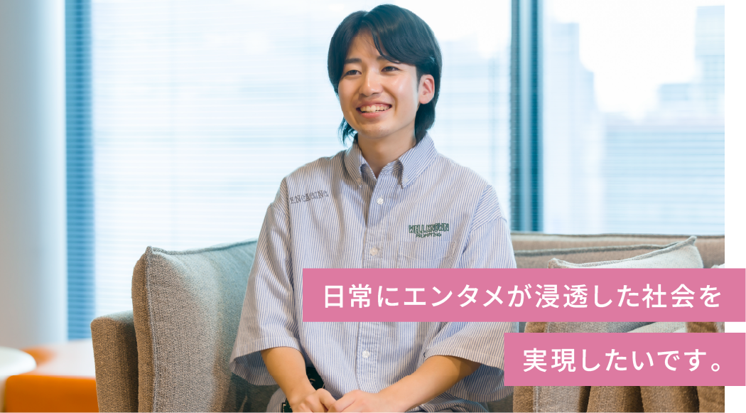 - ストレスの多い社会の中で、もっとエンタメが日常に浸透し、人々の生活を少しでも楽しくすることです。社員のアイデアや構想をAIやデジタルの力でスピーディに実現できる環境をつくり、お客さまに楽しさを届けるお手伝いをしたいと思っています。人々の生活に笑顔やワクワクを増やすのは、とてもやりがいがある仕事です。