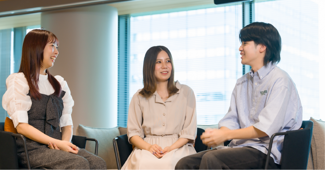- 大学入学と同時にコロナ禍となり、オンライン中心の生活でしたが、SNSを通じて仲間を見つけ、毎日のようにリモートで語り合うなど、人とのつながりを大切にして過ごしました。当社の会社説明会に参加した際、先輩社員の方がみなさんやりたいことが明確にあって、自分ごととしてワクワクできる仕事だと感じたのが決め手になりました。